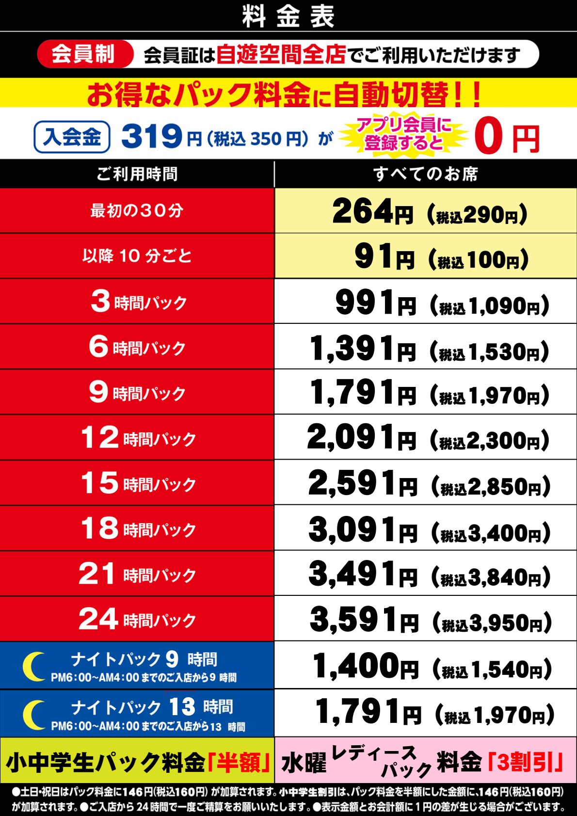 自遊空間料金表_中央店パック料金_20251212-01